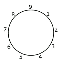 En particulier, on peut remarquer que les neuf points sont répartis uniformément le long d’un cercle. Pour chacun des points, les points situés de part et d’autre sont appelés des ailes. Ainsi le point 2 par exemple a pour ailes les points 1 et 3. On dit aussi que 1 et 3 sont les ailes de 2.